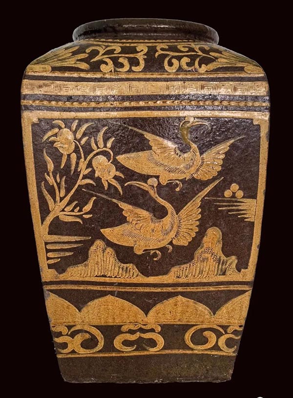 筆者收藏有一只清晚民國的方型陶缸,口是圓的,缸身和底是方的,產(chǎn)地為江蘇宜興。宜興是中國著名陶都,厚重燦爛的陶瓷文化冠譽全球。2014年,宜興均陶被國務(wù)院列為國家級非物質(zhì)文化遺產(chǎn)代表性項目,而陶缸正是宜興均陶中最具代表性的藝術(shù)形式。