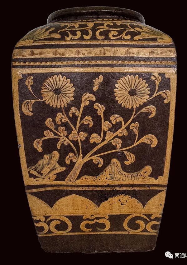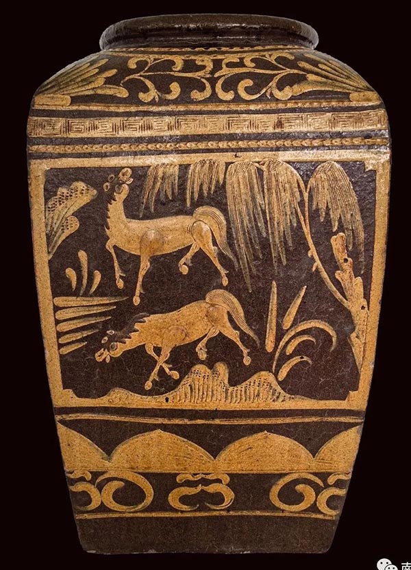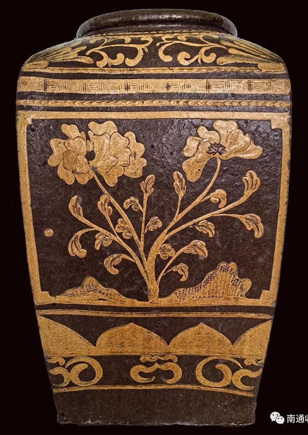 上圖:牡丹。牡丹代表富貴,蘊含著人們對生活的祝福和希望。此缸實用性與觀賞性合一,不像是普通百姓日常所用,應(yīng)為富貴文人喜愛之物,多用在書房放書軸畫卷之類。中國自古以來就有“器以載道,器以藏禮”之說。陶缸上的飾紋也是當(dāng)時生產(chǎn)力水平和藝術(shù)形式的表現(xiàn),不僅象征著文明,而且還是人們追求美的體現(xiàn),它承載的文化符號值得我們?nèi)パ芯颗c挖掘。